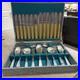 The Mappin & Webb Silver Service 46 Piece Canteen of Cutlery in the Canberra Pattern is an elegant antique set of silver plate cutlery. The Canberra pattern, together with faux bone knife handles adds a touch of vintage elegance to any dining table, making it a timeless and stylish addition to any silverware collection. Set includes: 6 Dinner Knives 6 Dinner Forks 6 Soup Spoons 6 Starter Knives 6 Starter Forks 6 Dessert Spoons 6 Teaspoons 4 Serving Spoons All pieces stamped on the underside with “Mappin & Webb Princes Plate” and on the knife blades “Trustworthy Mappin & Webb Sheffield”. This lovely set has the normal signs of use. Please note that one of the starter knives has been replaced with a similar looking knife. The canteen box is not the original and is unbranded and has usual signs of use.
