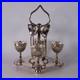 Antique Silverplate etched glass Cruet Set Ornate 6 piece condiment set. Rare unusual cut/etched glass bowl insert, with grapes and vine silver plate holder. Six bottles, one is different design, all are in excellent condition. Stamped by maker C G AND PG. Good quality center piece for any table.