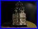 Antique Silverplate etched glass Cruet Set Ornate 6 piece condiment set. Rare unusual cut/etched glass bowl insert, with grapes and vine silver plate holder. Six bottles, one is different design, all are in excellent condition. Stamped by maker C G AND PG. Good quality center piece for any table.